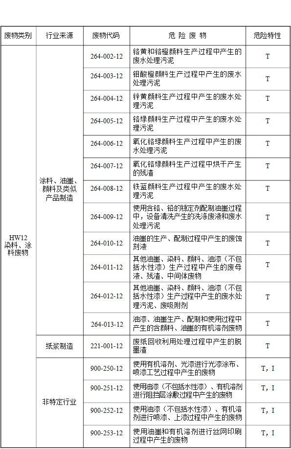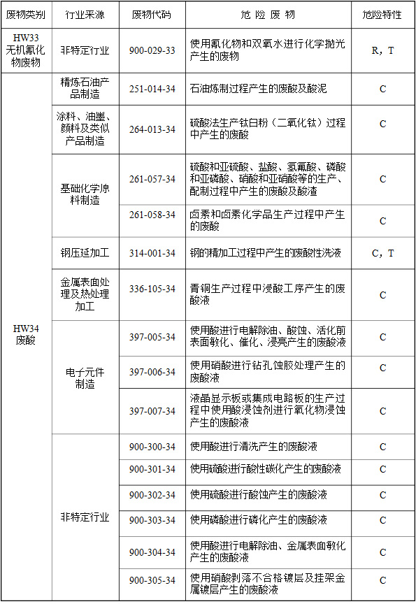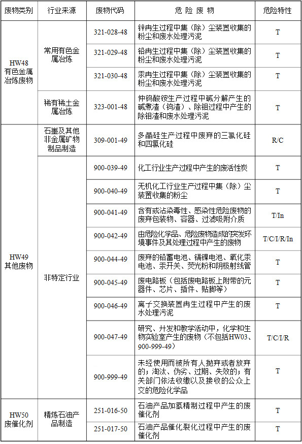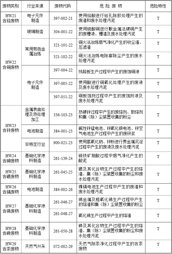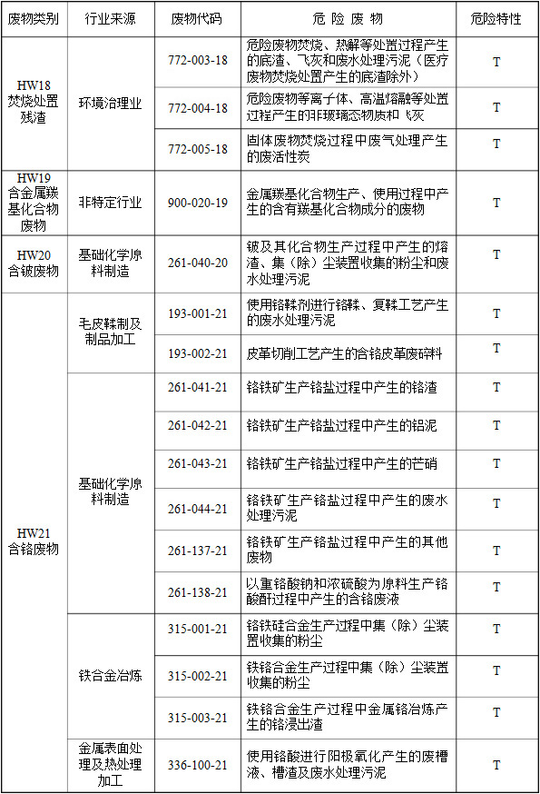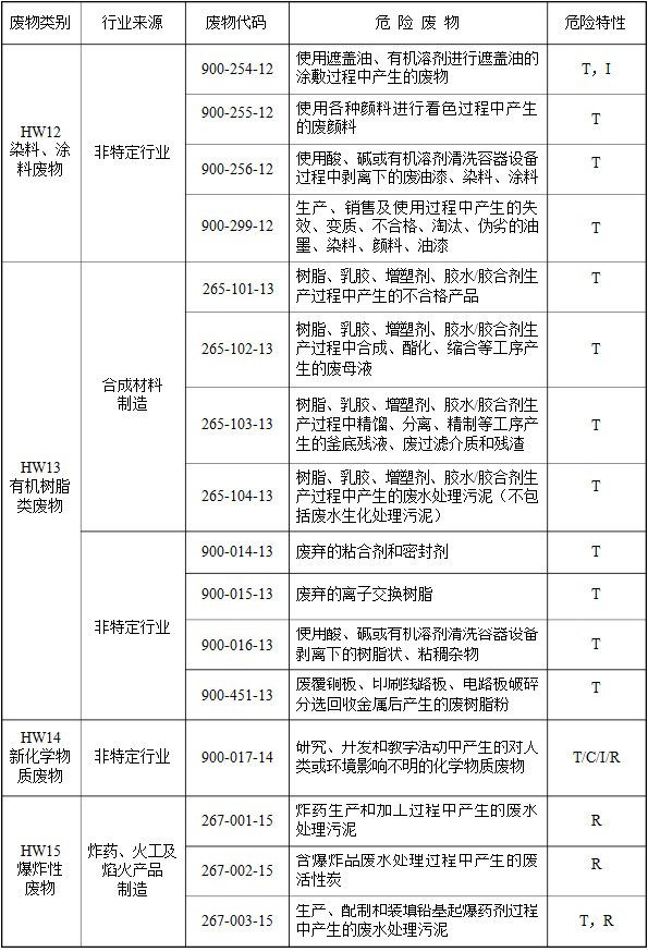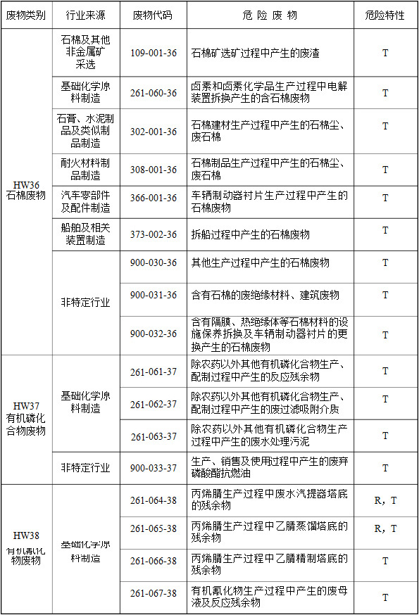 (二)行業(yè)來源,是指危險廢物的產(chǎn)生行業(yè)。